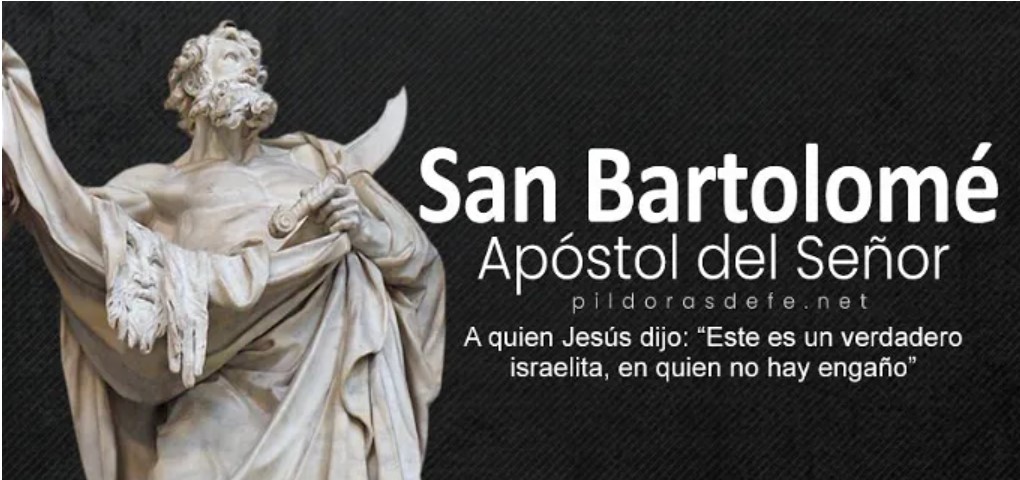 La fiesta de San Bartolomé se celebra el 24 de agosto. Se le suele representar llevando un cuchillo, instrumento de su martirio.