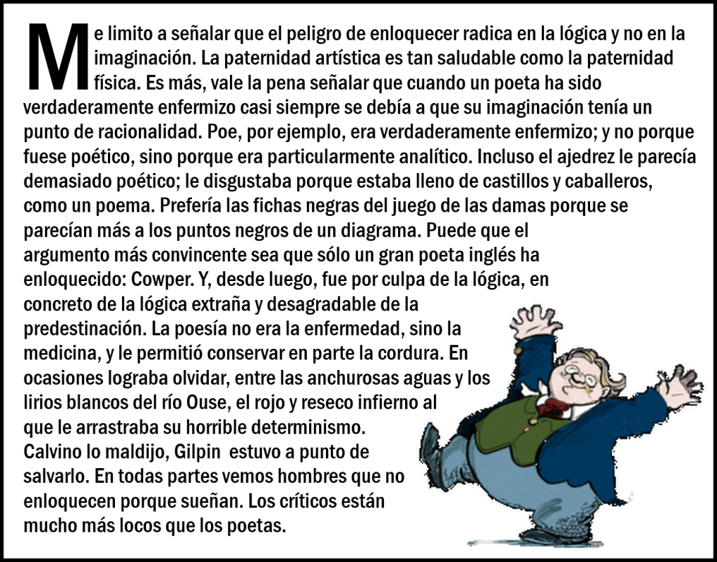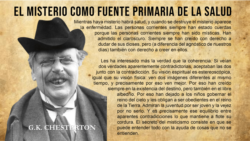 «El sabio es quien quiere asomar su cabeza al cielo; y el loco es quien quiere meter el cielo en su cabeza.» Chesterton