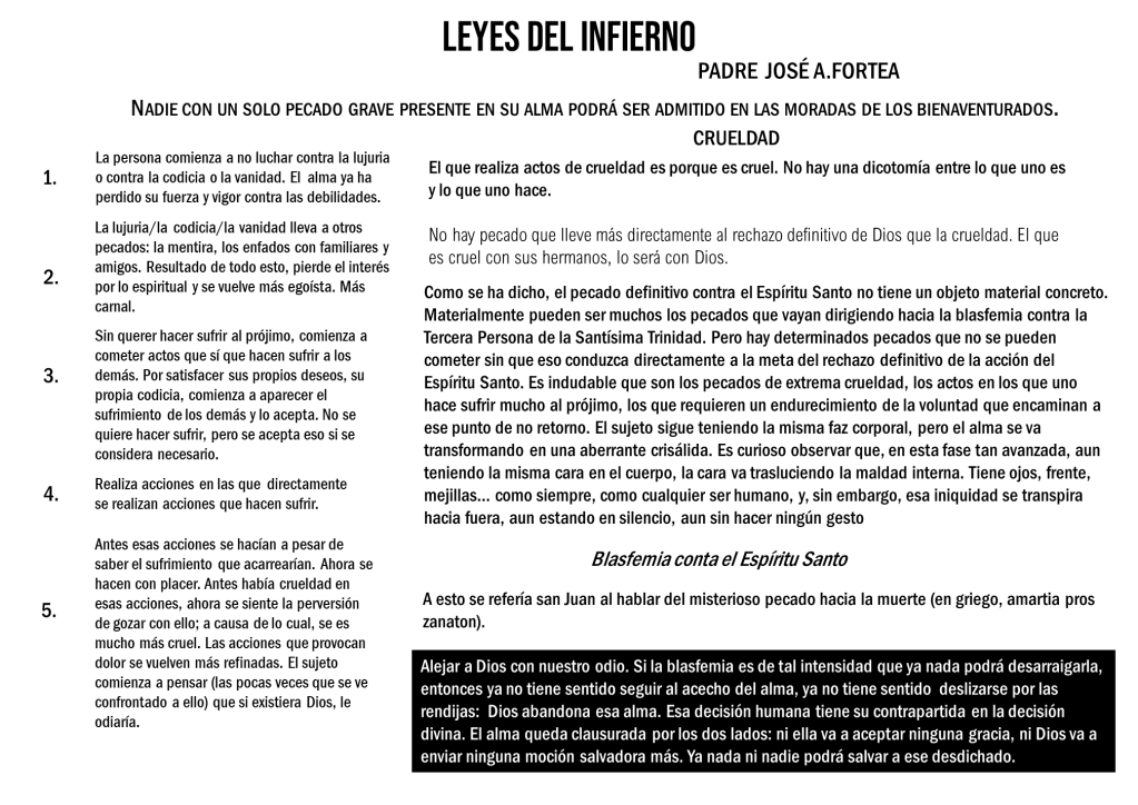 El pecado es una realidad en nuestra vida. Somos pecadores. Sin excepción. Sin embargo, hay personas que en el ejercicio de su libertad, voluntad, inteligencia y albedrío responden positivamente a la gracia sobrenatural que le envía Dios/Trino para salvar su alma de la condenación. Otras, no. A continuación presentamos un resumen del modelo elaborado por el Padre José Antonio Fortea en que explica como el pecado no resistido por la persona, se va expandiendo en la mente, la psiquis y la voluntad hasta separarla de la fuente de la Vida y del Amor que es Dios/Trino. Separación que puede llegar al extremo de ser un rechazo con odio firme hacia Dios y entonces, el alma se condena irreversiblemente.