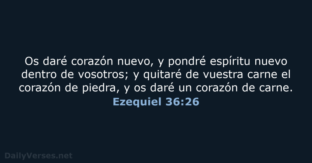 Derramaré sobre vosotros un agua pura que os purificará: de todas vuestras inmundicias e idolatrías os he de purificar; y os daré un corazón nuevo, y os infundiré un espíritu nuevo; arrancaré de vuestra carne el corazón de piedra, y os daré un corazón de carne.