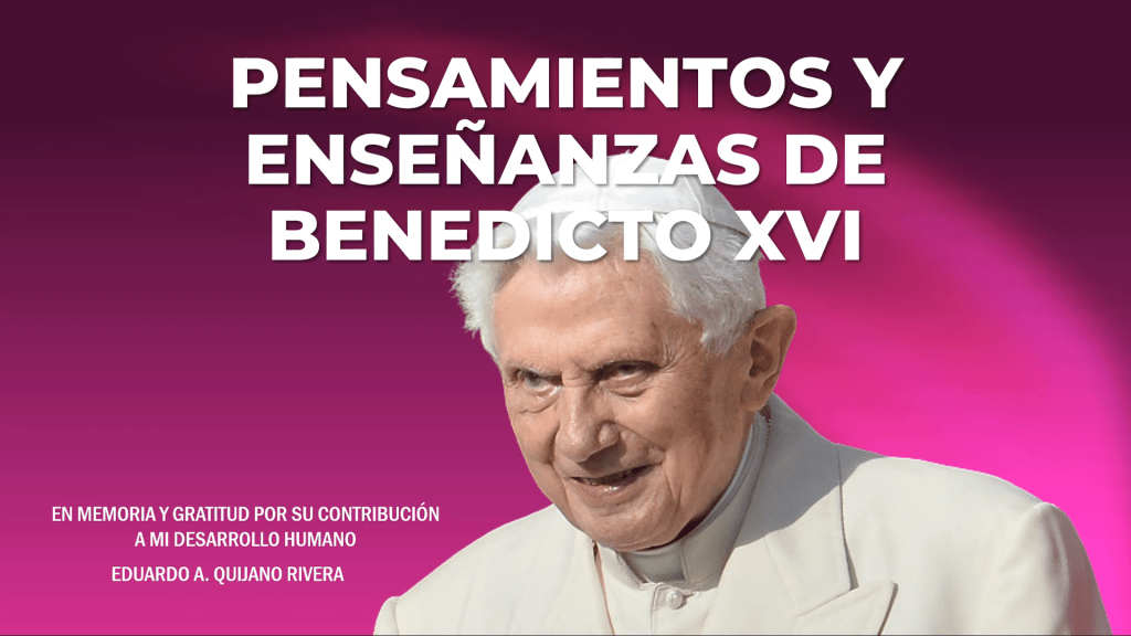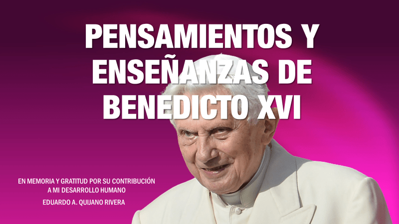 En memoria y agradecimiento a su obra como Pastor hemos preparado diez lecciones o enunciados inspirados y apoyados en el pensamiento y las enseñanzas del Papa Benedicto XVI. En estas diez lecciones se refutan las herejías y las propuestas engañosas que se presentan desde las ideologías políticas, sean de izquierda, de centro o derecha, que coinciden en crear una civilización sin Dios. Lo que ha siempre ha resultado y resultará en una enorme catastrófe para la humanidad y para el mundo. Para aquellos, hermanos y hermanas en la fe católica que quieran abrir los ojos para no dejarse manipular por las falsas doctrinas e ideologías deshumanizantes y anti/cristianas que prometen una nueva civilización superior sin Dios o con un “Dios” acomodado a sus intereses y a sus comportamientos contrarios a la moral natural y las leyes morales de Dios, les invito a que lean y mediten estos textos. Los pueden a su vez, validar, estudiando la obra de Benedicto XVI.