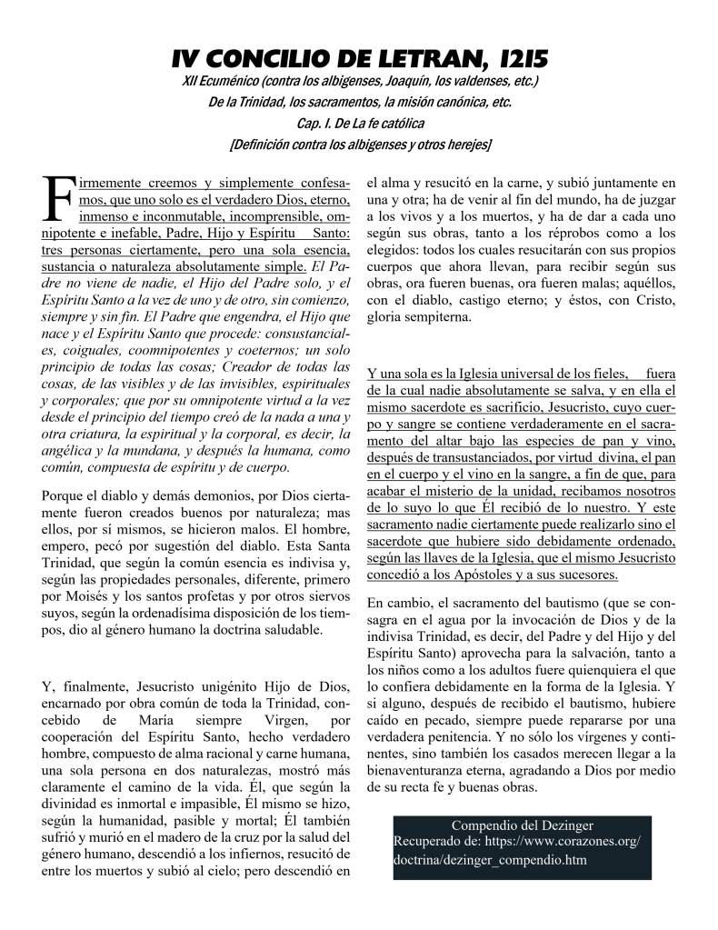 DEFINICIÓN DE LA FE CATÓLICA Posted bylicquijanoNovember 4, 2023Posted inFE, RAZON Y VERDAD IV CONCILIO DE LETRAN, 1215 Share this: Click to share on X (Opens in new window) X Click to share on Facebook (Opens in new window) Facebook Like Loading... Related