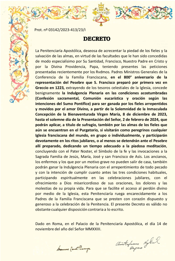 POR CONMENORACIÓN DE LOS 800 AÑOS DE HABERSE PREPARADO EL PRIMER PESEBRE POR SAN FRANCISCO DE ASIS EN 1223 EN GRECCIO