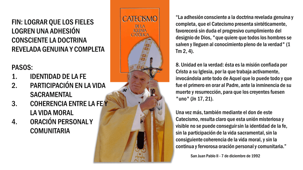 Por lo tanto, vamos a examinar y estudiar el Catecismo como una Guía segura para lograr la Felicidad, aquí y ahora y en la ETERNIDAD. La que todos anhelamos y necesitamos y la que Dios/Padre quiere para cada uno de nosotros. Estamos creados para vivir en relación con el Padre Celesital. En el Catecismo sintéticamente veremos con la ayuda de estos principos la forma segura y eficaz de hacerlo.