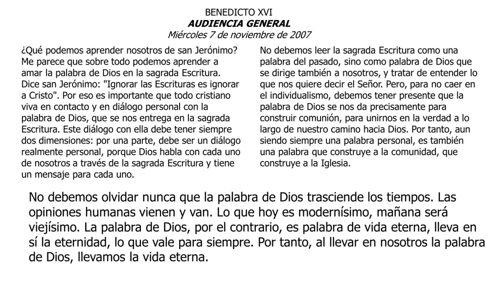 LA IMPORTANCIA DE LA LECTURA DE LA BIBLIA SAN JERÓNIMO Posted bylicquijanoMarch 20, 2024March 28, 2024Posted inCUARESMA 2024, FE, RAZON Y VERDAD Share this: Click to share on X (Opens in new window) X Click to share on Facebook (Opens in new window) Facebook Like Loading... Related