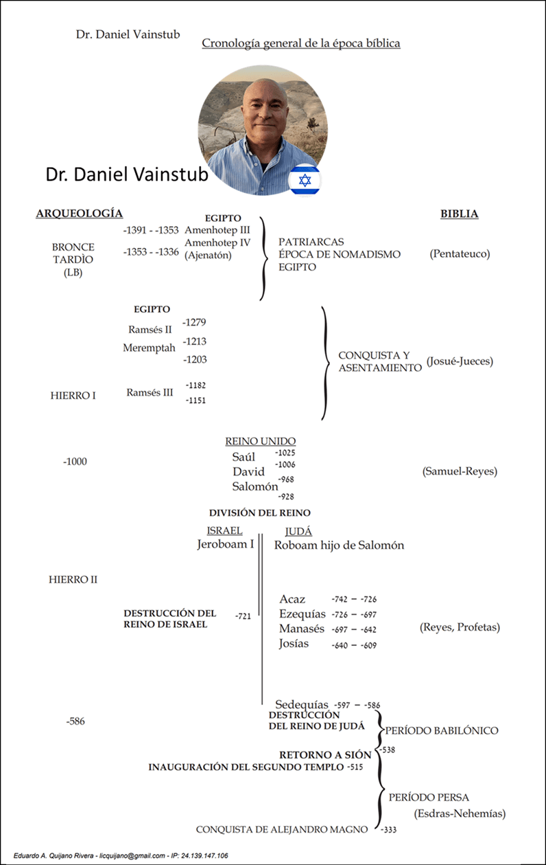 Este documento fue preparado por un especialista en arqueología bíblica: el Dr. Daniel Vainstub. Destacado y distinguido profesor en la Universidad de Jersualén. Participamos en un curso via digital con el Dr. Vainstub sobre el fascinante tema de la Arqueología Bíblica y nos compartió este documento como en esquema general de la historia bíblica. EsteContinue reading “CRONOLOGÍA GENERAL DE LA ÉPOCA BÍBLICA”