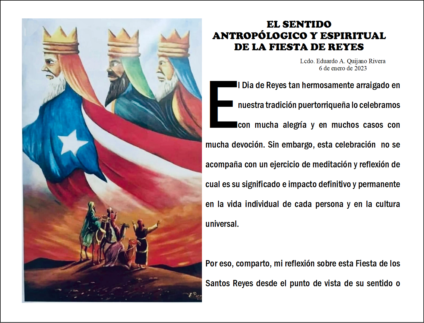 EL SENTIDO ANTROPÓLOGICO Y ESPIRITUAL DE LA FIESTA DE REYES